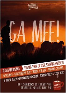 - 24 december ‘s avonds. de kerstnachtviering van de drie kerken. Dit jaar is onze kerk de locatie. Thema: Ga je mee? En daarmee bedoelen we ook: neem iemand mee.